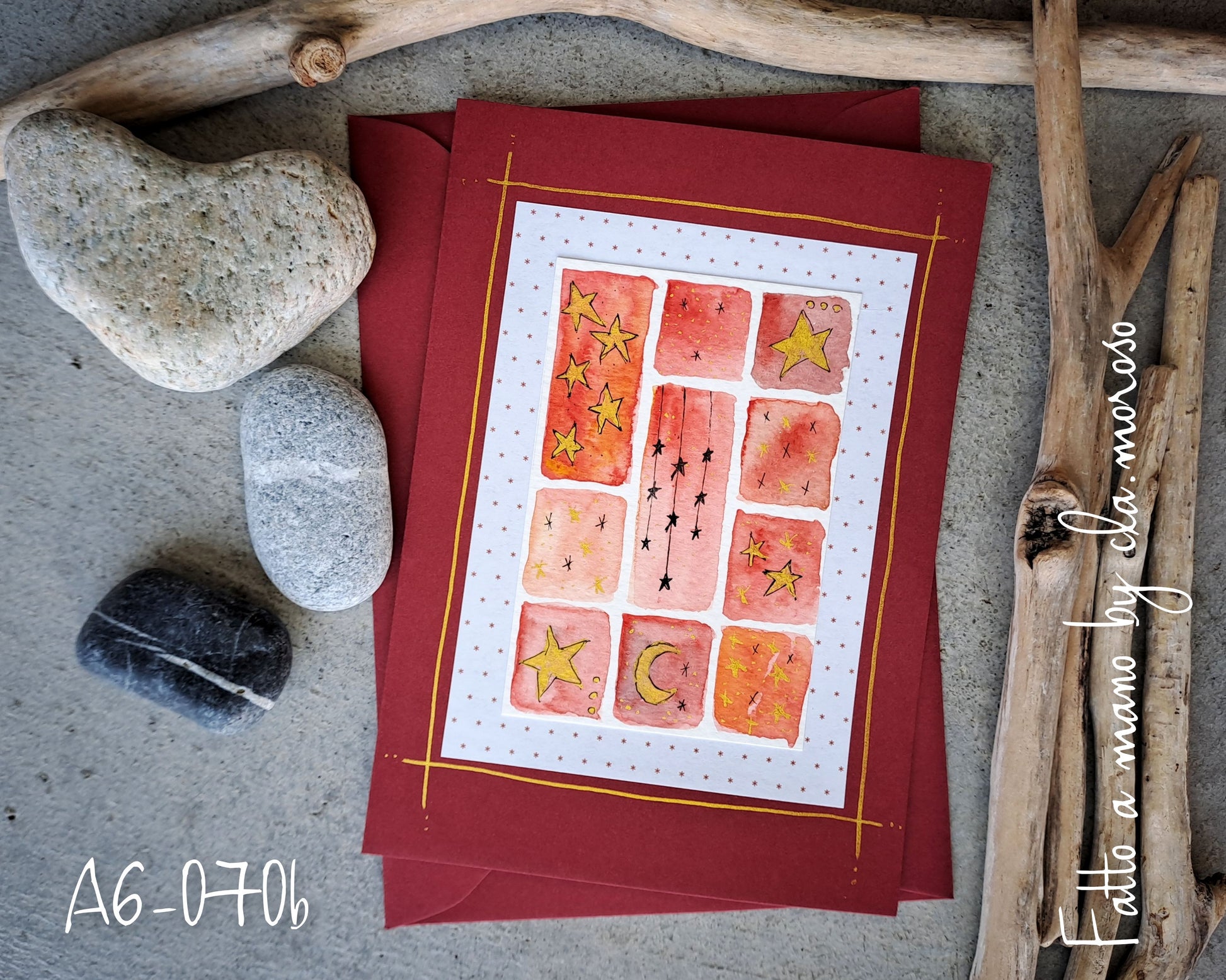 Questo biglietto doppio formato A6 (10,5 x 14,8 cm) in cartoncino pregiato è accompagnato da una busta e presenta un disegno realizzato a mano con acquarello. Ogni pezzo è unico, perfetto per rendere ogni augurio di Natale esclusivo e memorabile. Ideali per chi cerca un tocco colorato e originale in occasione delle feste natalizie!