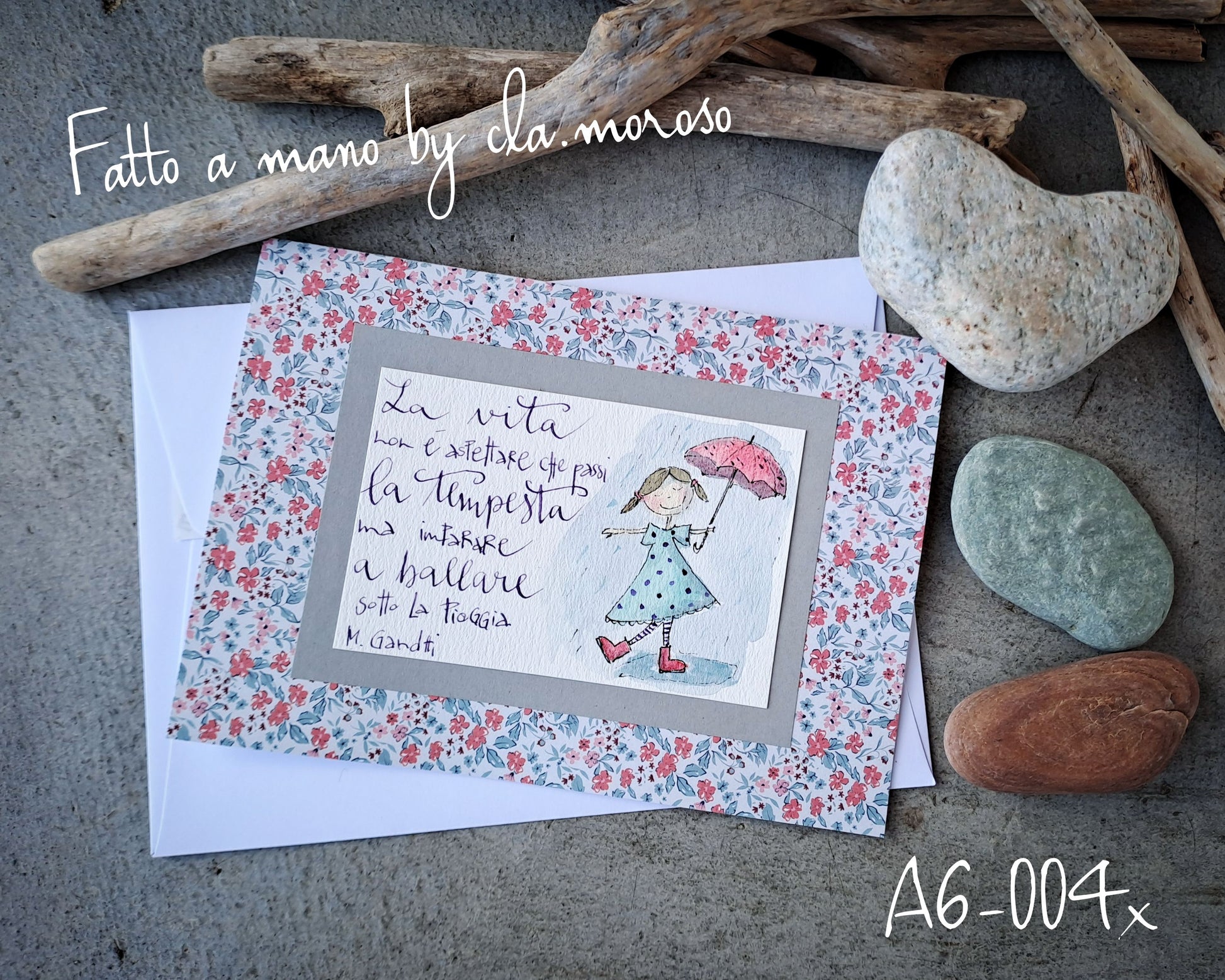 Questo biglietto doppio formato A6 (10,5 x 14,8 cm) in cartoncino pregiato è accompagnato da una busta e presenta un disegno e una citazione di Gandhi, realizzato a mano con acquarello e inchiostro. Ogni pezzo è unico, perfetto per regalare un sorriso con un tocco artistico e personale. Un modo simpatico e originale per condividere i tuoi messaggi speciali!