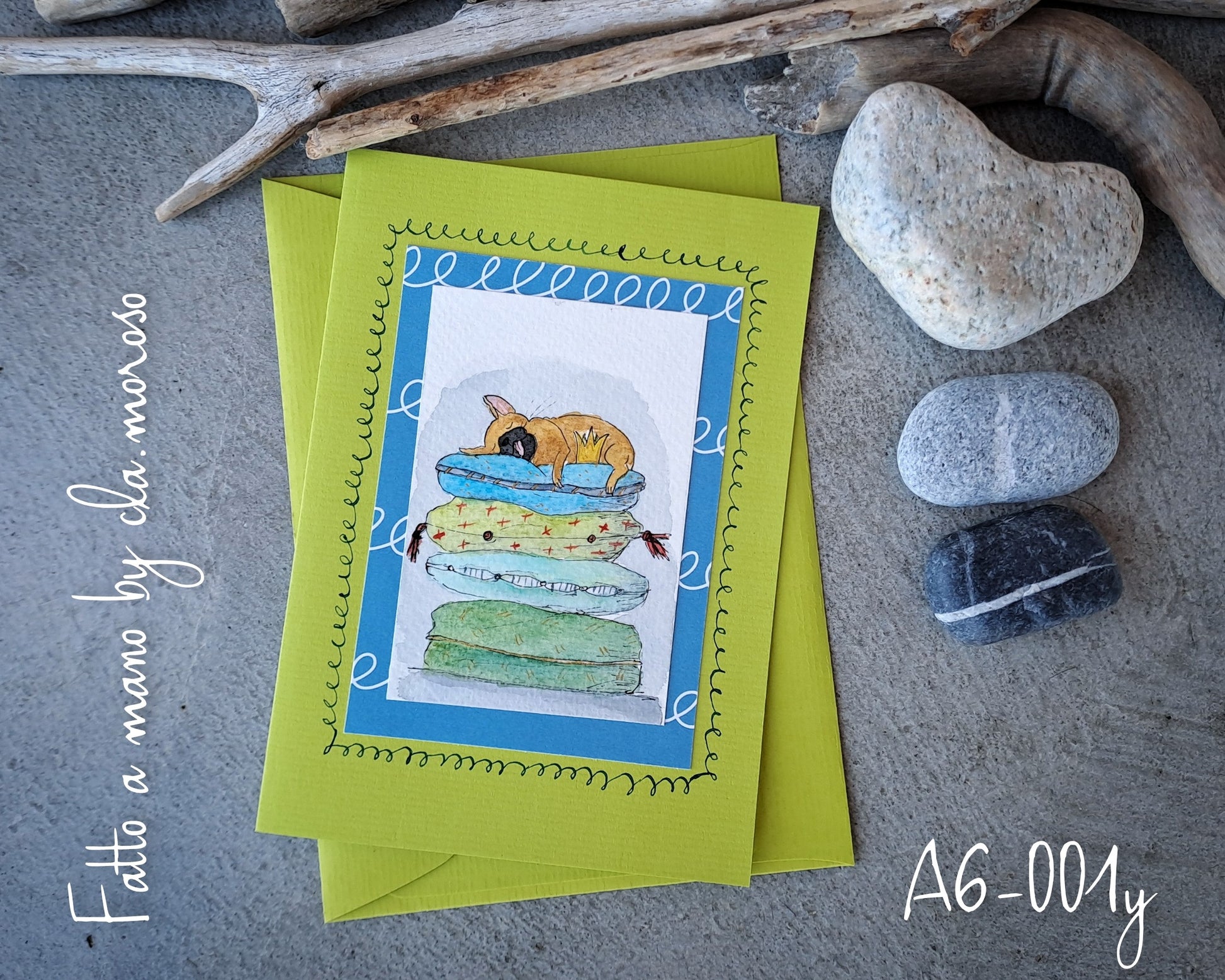 Questo biglietto doppio formato A6 (10,5 x 14,8 cm) in cartoncino pregiato è accompagnato da una busta e presenta un disegno a tema cane, realizzato a mano con acquarello. Ogni pezzo è unico, perfetto per regalare un sorriso con un tocco artistico e personale. Un modo simpatico e originale per condividere i tuoi messaggi speciali!