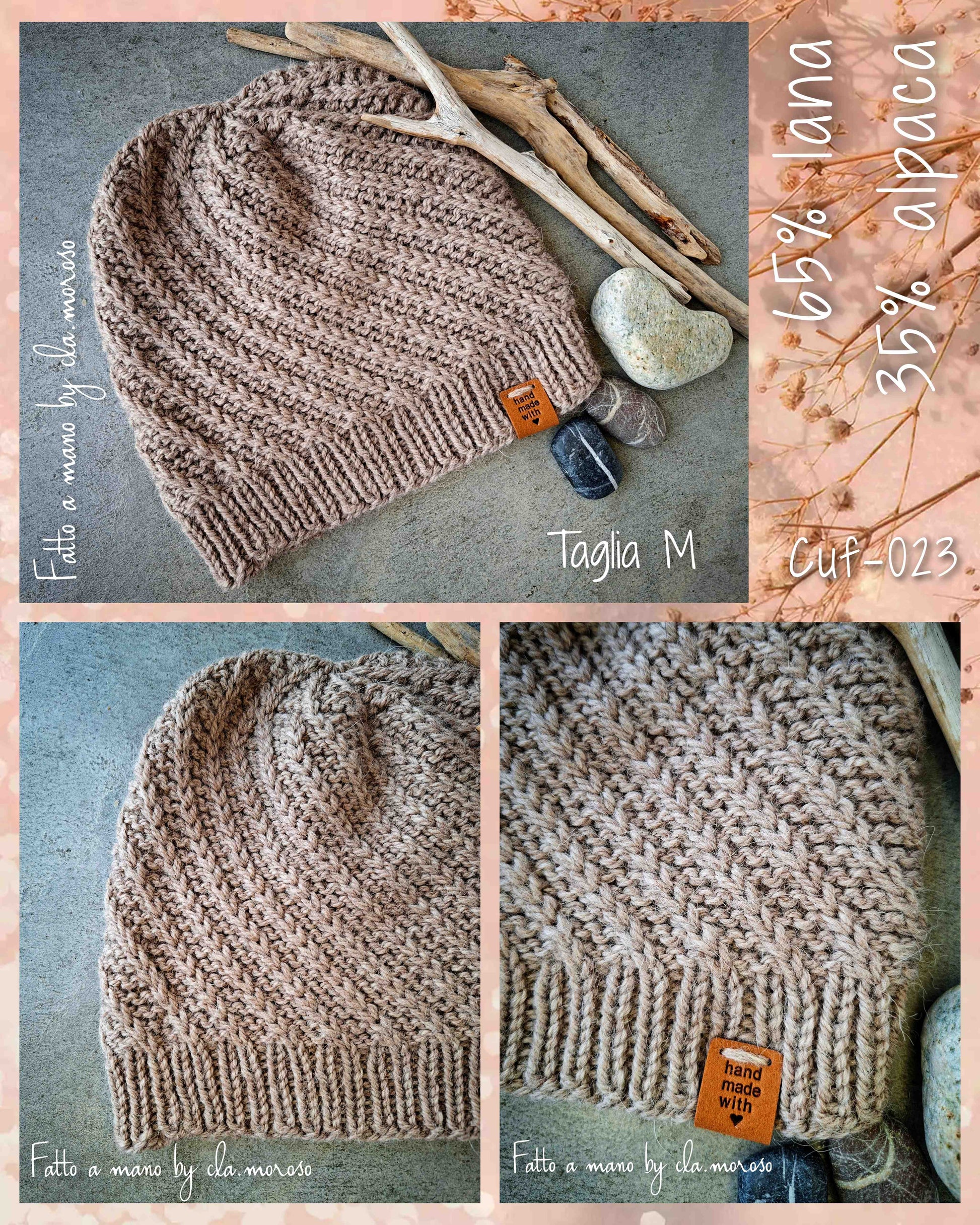 Questa cuffia unisex taglia M, realizzata a maglia con un elegante disegno, è prodotta al 65% lana e 35% alpaca di alta qualità. Il filato naturale assicura calore e traspirabilità, ideale per le giornate fredde. È possibile lavarla comodamente in lavatrice utilizzando il programma lana, garantendo così una facile manutenzione senza compromettere la morbidezza e la durata del prodotto.
