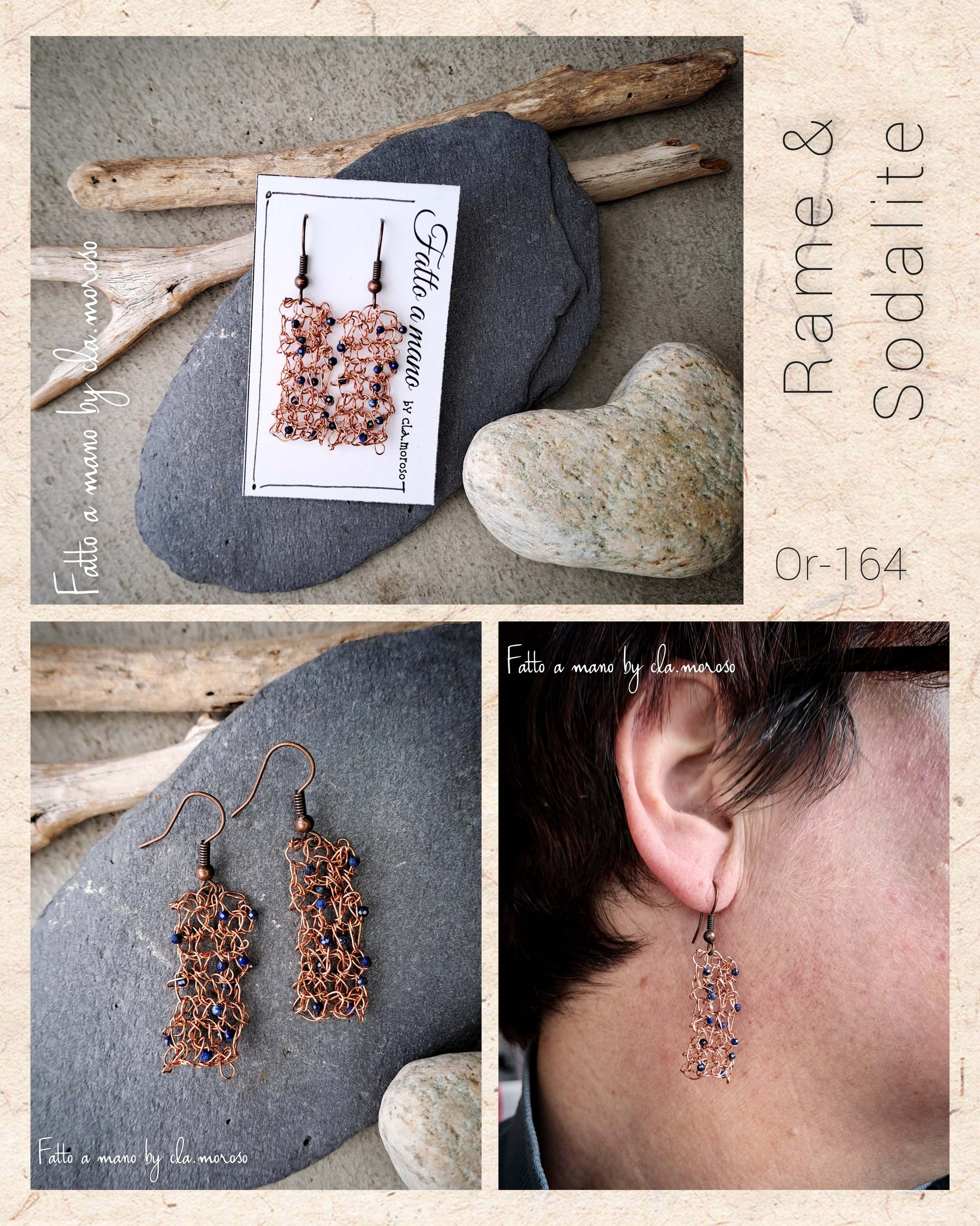 Questi orecchini rettangolari in rame, realizzati con filo di rame lavorato all'uncinetto e impreziositi da piccole pietre, offrono un design semplice e raffinato. La monachella in rame senza nichel garantisce comfort e sicurezza anche per pelli sensibili, mentre la lunghezza di 4,5 cm li rende un accessorio elegante e discreto, ideale per valorizzare con sofisticatezza ogni look.