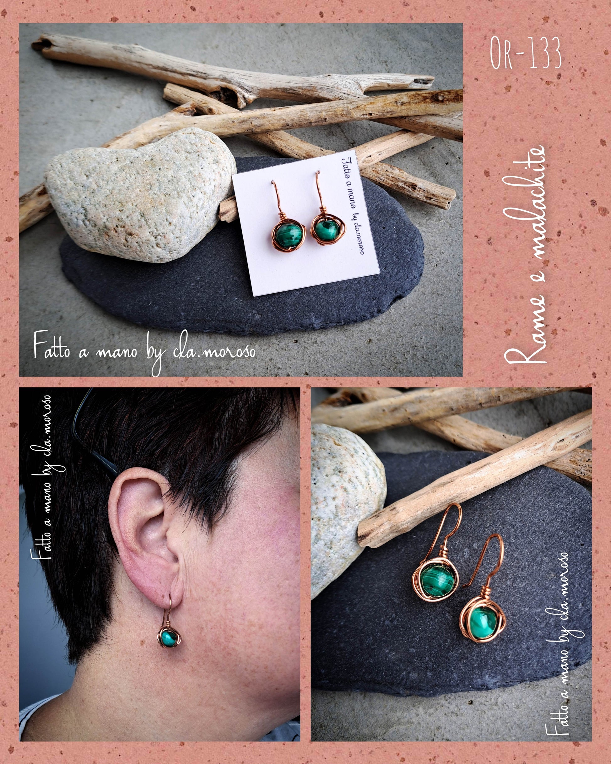 Scelta eccellente per chi cerca un accessorio semplice ma curato. Realizzati a mano con filo in rame senza nickel, sono delicati anche per le pelli più sensibili. La pietra aggiunge un tocco naturale di colore, mentre la monachella ad amo offre comfort con una lunghezza complessiva di circa 6 cm. Questo pezzo unico è perfetto per accompagnarti con discrezione in ogni momento della giornata.