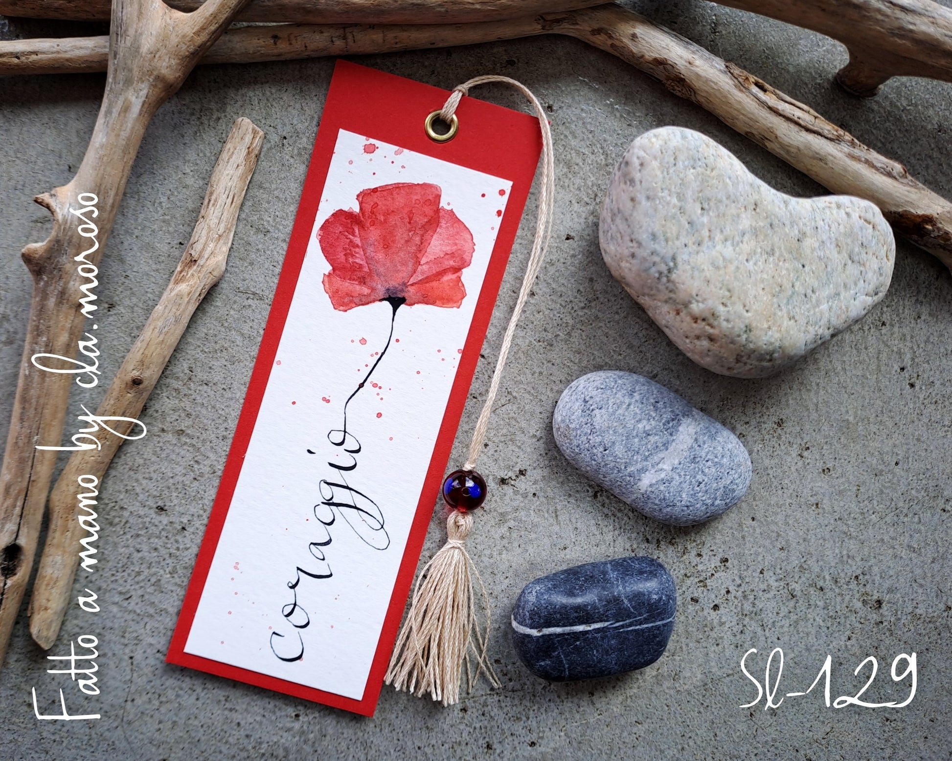 Questi segnalibri rosso "coraggio" in cartoncino combinano l’arte della cromoterapia con un design raffinato: un delicato fiore dipinto ad acquarello valorizza ogni pezzo, mentre un ciuffo con perlina offre un dettaglio elegante e tattile. Ideali per chi cerca un accessorio che unisca estetica e benessere, aiutano a evocare tranquillità durante la lettura.